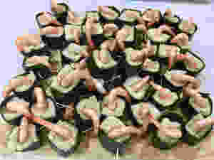 I really liked these prawn toasts and specially dipped in the mayo with wasabi. My girls were disappointed that there was no rice in these sushi wraps but they did enjoy them!